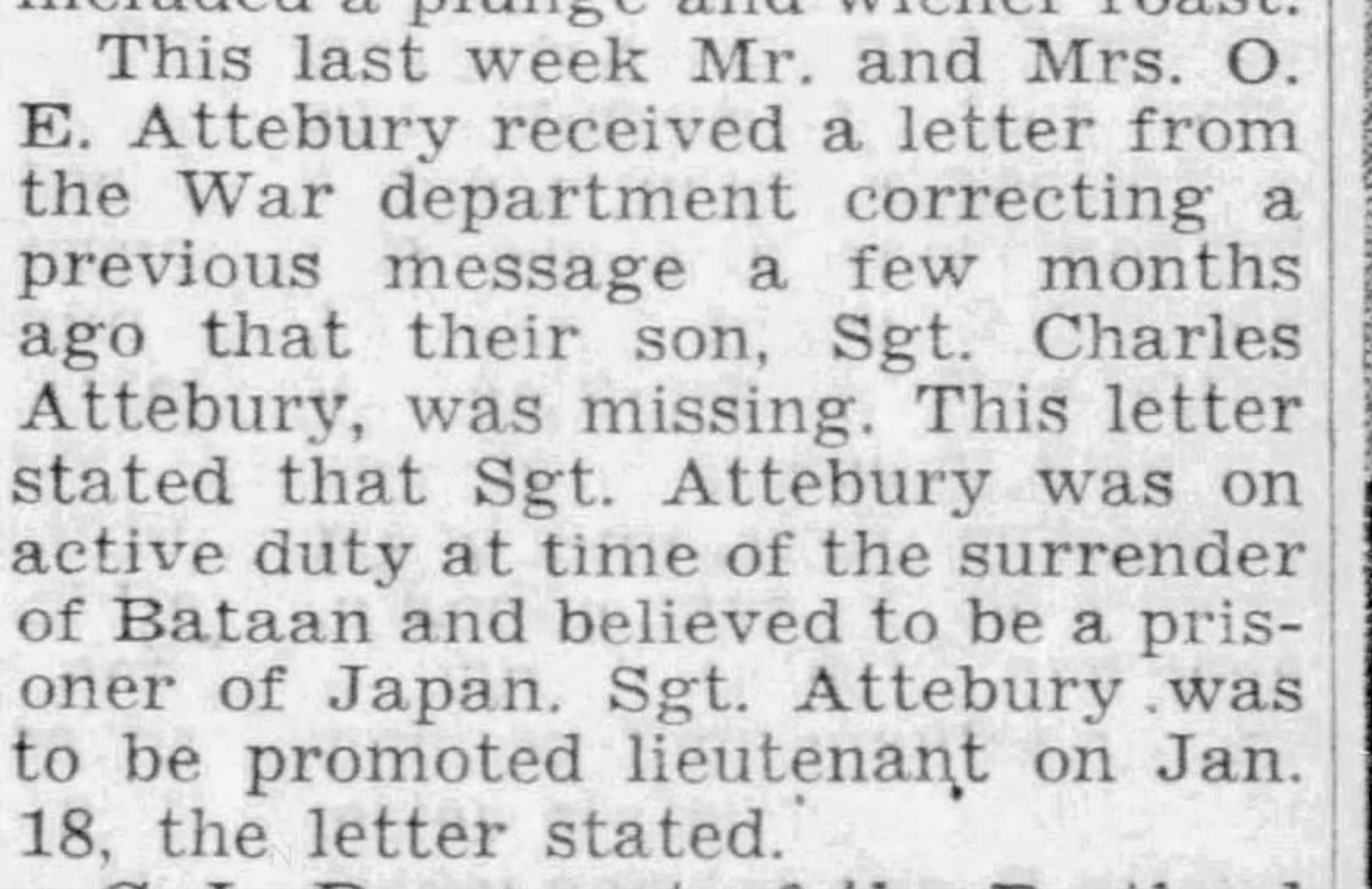 Atteberry’s name is recorded on the Walls of the Missing at the Manila American Cemetery and Memorial in the Philippines, along with the others still missing from World War II. A rosette will be placed next to his name to indicate he has been accounted for.