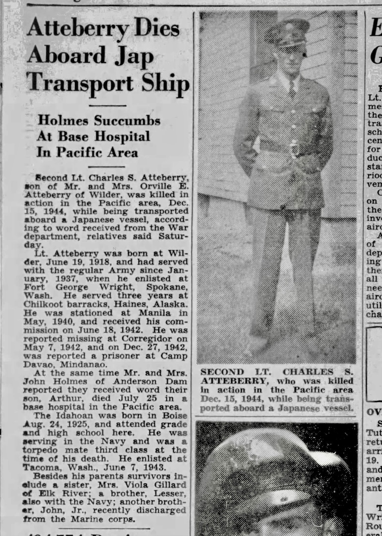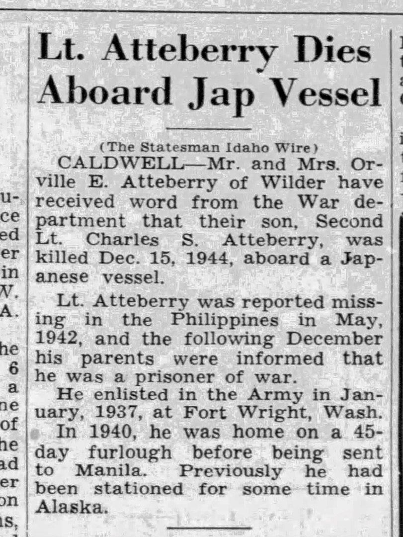 The Defense POW/MIA Accounting Agency announced today that U.S. Army 2nd Lt. Charles S. Atteberry, 26 of Wilder, Idaho, killed during World War II, was accounted for June 4, 2025.