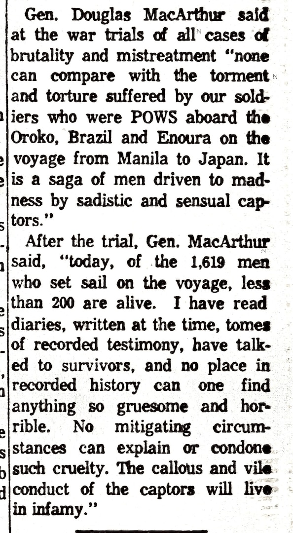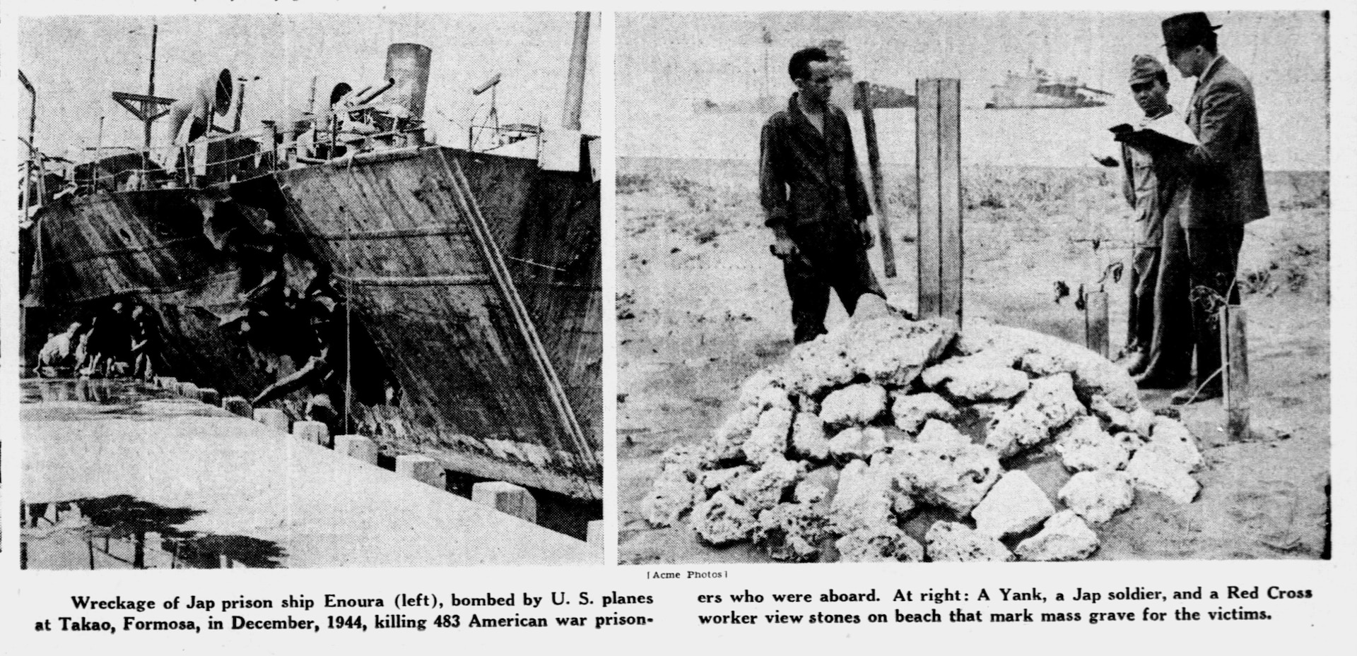 Following the end of the war, the American Graves Registration Command was tasked with investigating and recovering missing American personnel. In May 1946, AGRC Search and Recovery Team #9 exhumed a mass grave on a beach at Takao, Formosa, recovering 312 bodies. Following unsuccessful attempts to identify the remains, they were declared unidentifiable. They were buried in the National Memorial Cemetery of the Pacific, known as the Punchbowl in Honolulu.