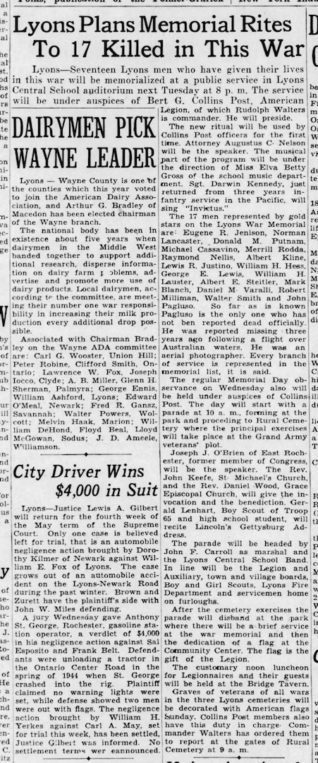 Pagliuso’s name is recorded on the Walls of the Missing at the Manila American Cemetery and Memorial, along with others still missing from WWII. A rosette will be placed next to his name to indicate he has been accounted for.