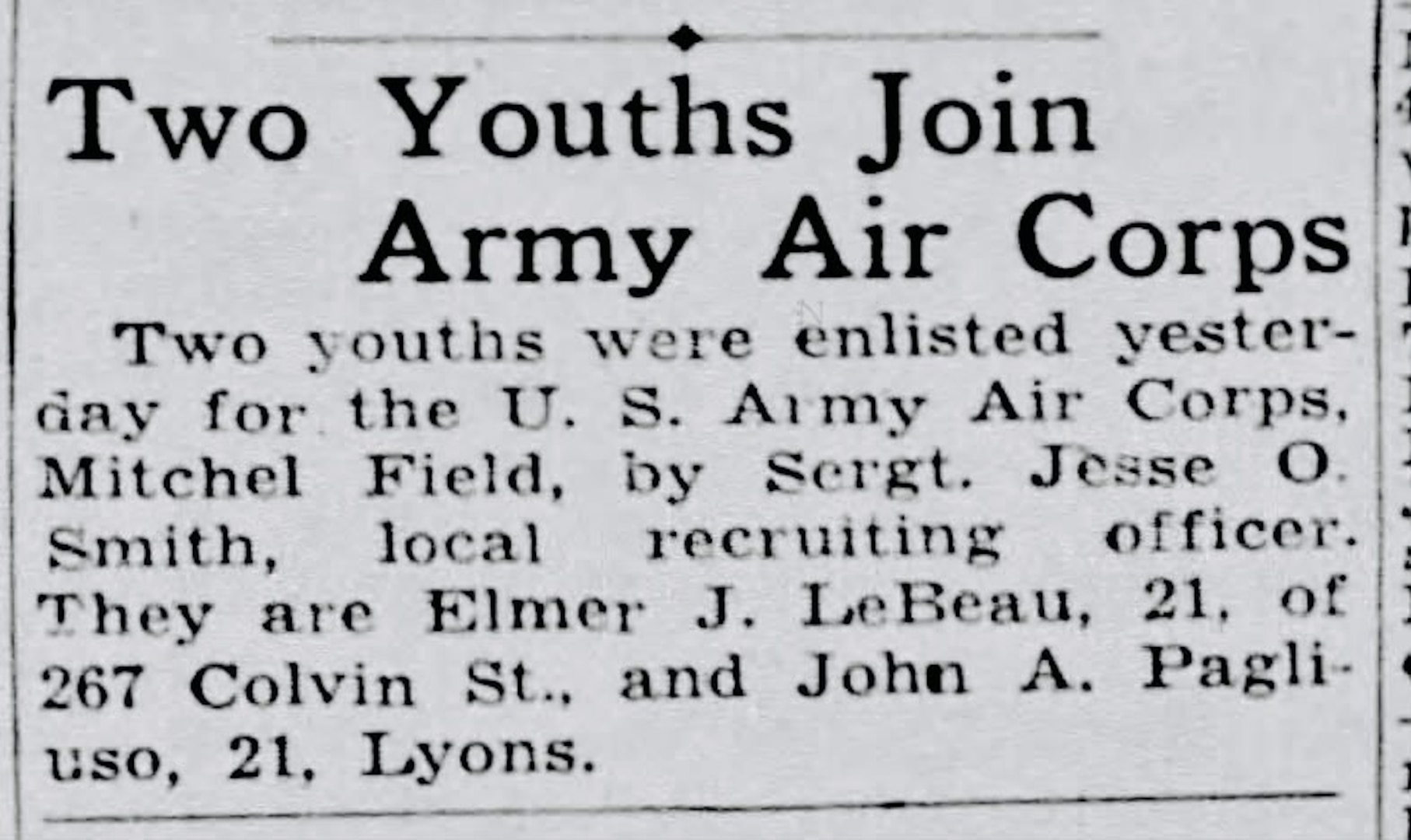 In the fall of 1942, Pagliuso was assigned to the 405th Bombardment Squadron, 38th Bombardment Group. On Oct. 5, Pagliuso was onboard a B-25 Mitchell bomber with six other crew members during a mission over Papua New Guinea. The aircraft did not return, and postwar search efforts failed to recover any remains.